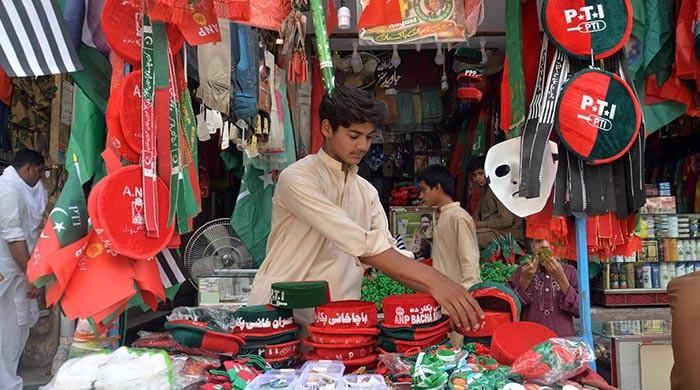 A vendor displaying flags, badges and other stuff of political parties to attract the customers at Qissa Khawani Bazaar in Peshawar. Photo: Online PESHAWAR: The Muttahida Majlis-e-Amal (MMA) and Pakistan Tehreek-e-Insaf (PTI) are the main...from GEO TV - Pakistan https://ift.tt/2O4kRRa